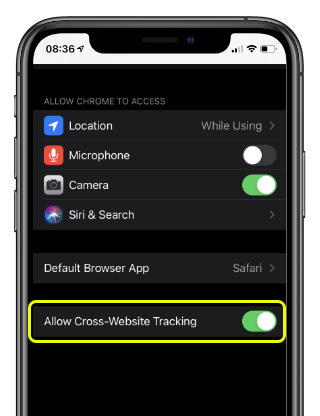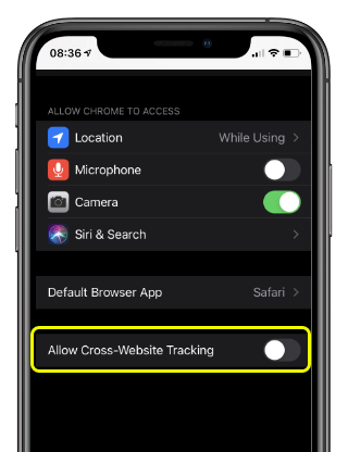 Step 3 - In Allow Cross-Website Tracking, switch is OFF(appears in white when OFF)